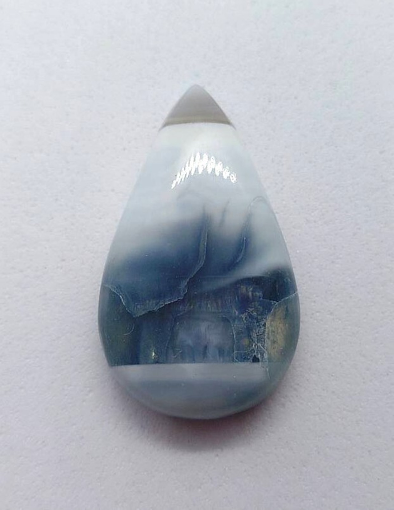 実物見るとそこまで気にならないのですが、ドロップ型の下部右側に若干クラックがあります。多分もともとの石にあったものだと思います。