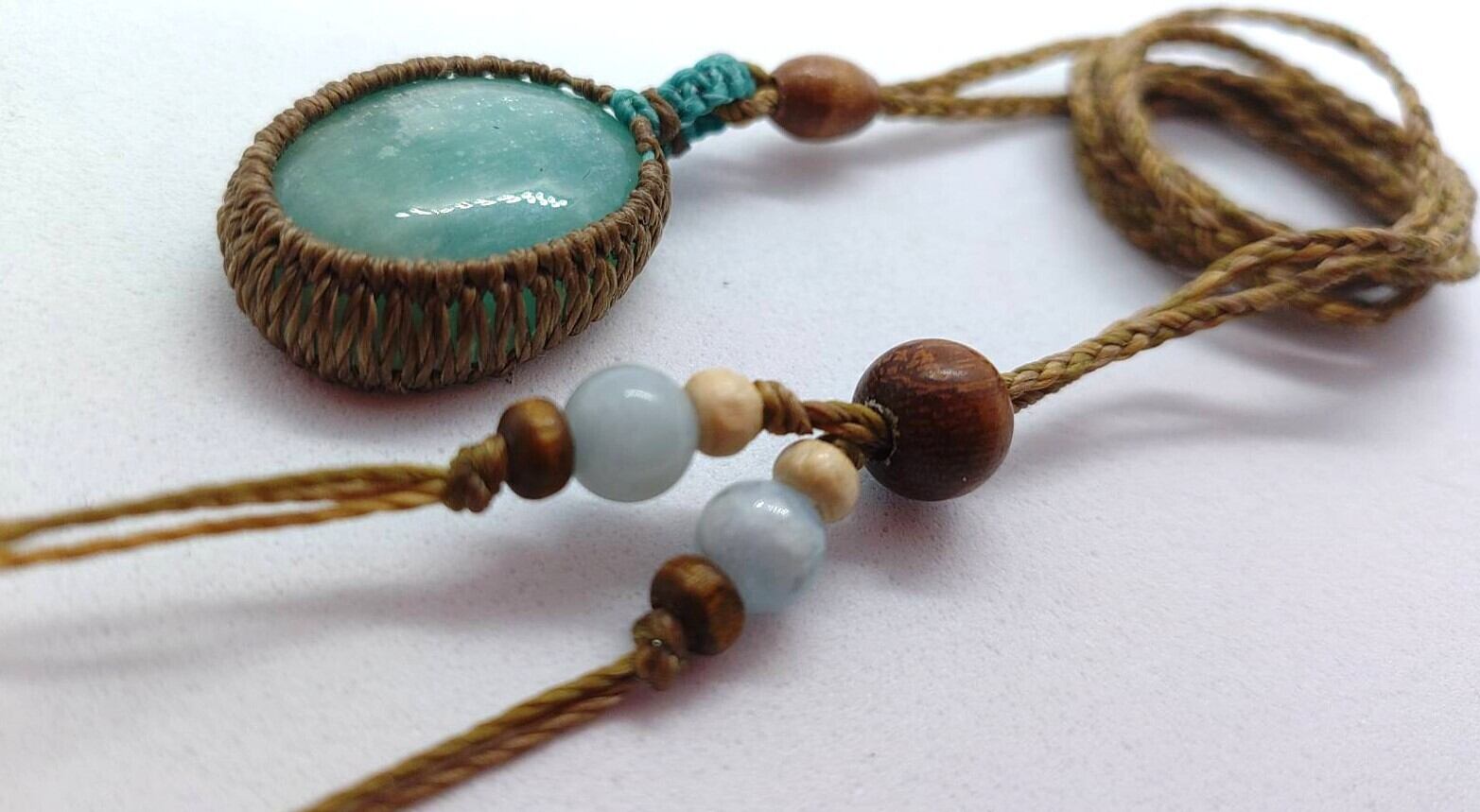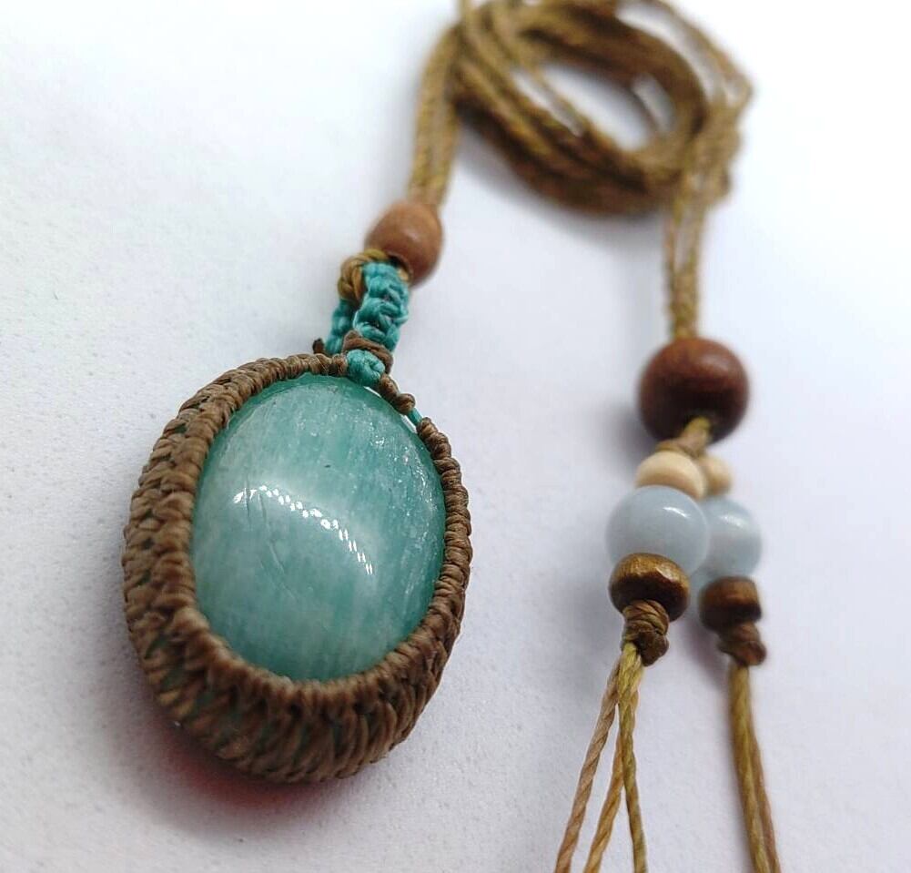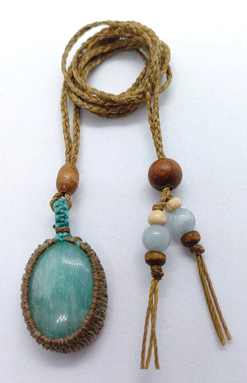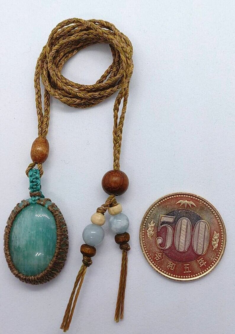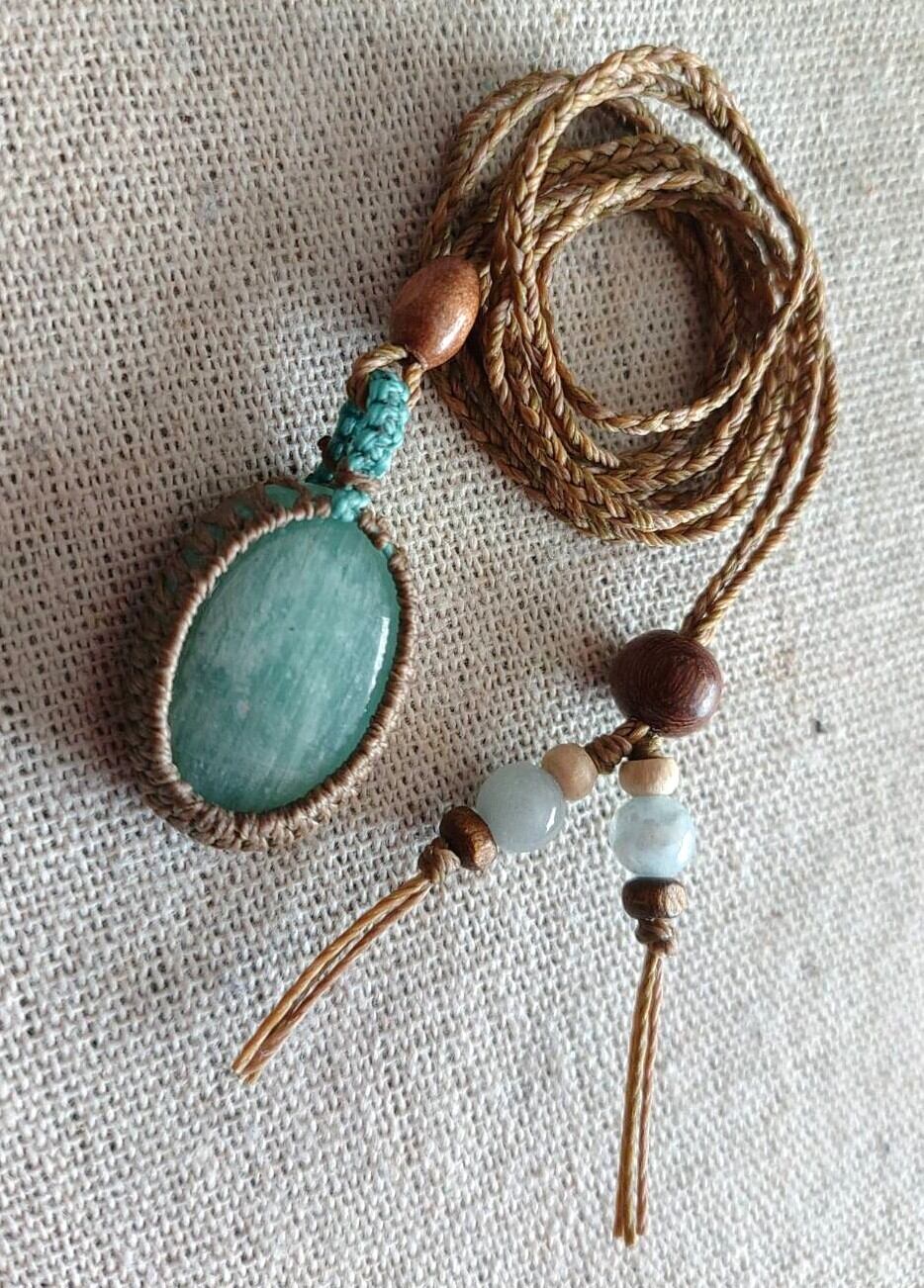 【マクラメ編みペンダント】アマゾナイト【ハンドメイド作品】#05