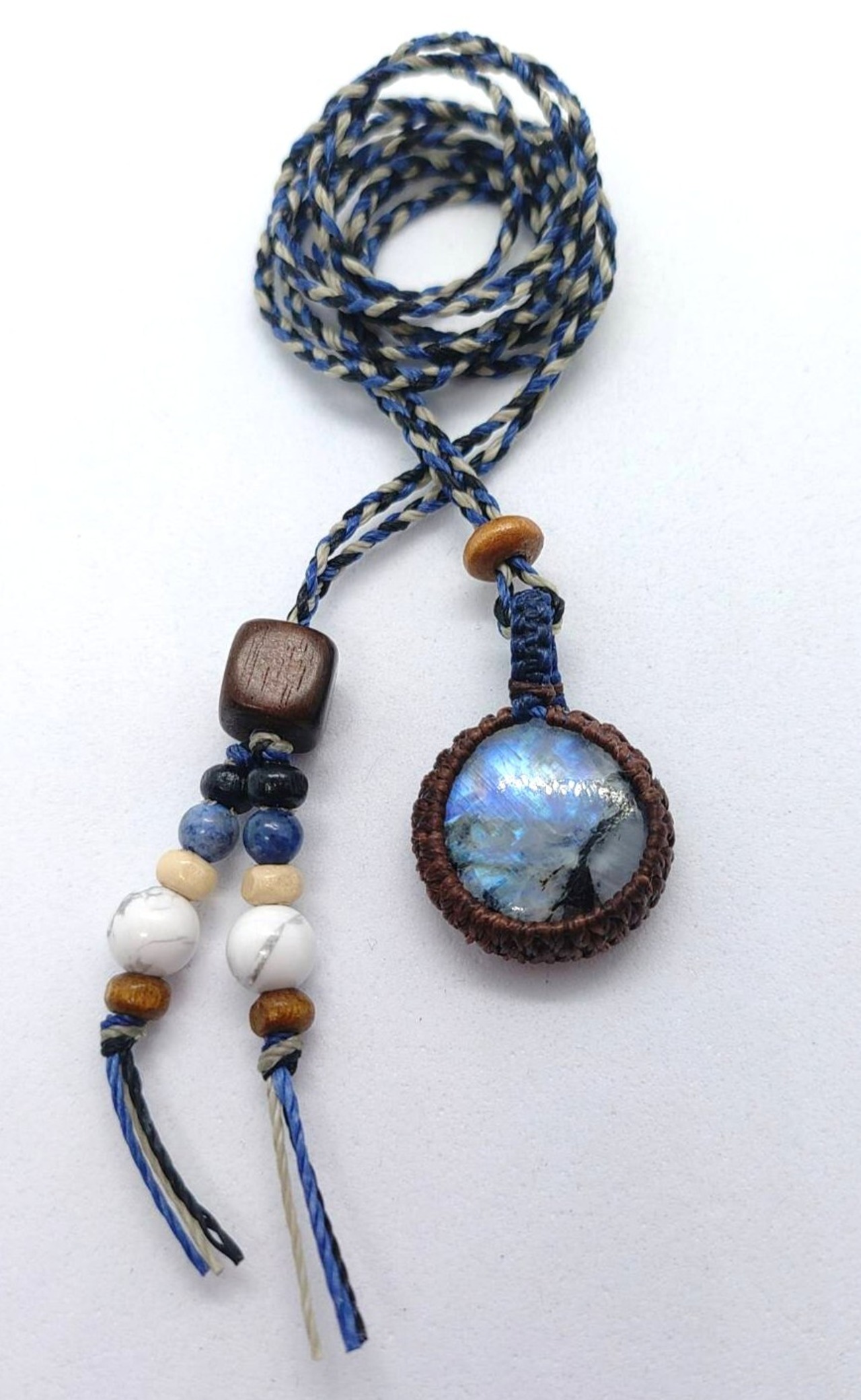 ・エンドビーズはホワイトハウライトとデュモルチェライトとウッドビーズです。